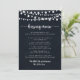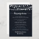 Diese Spielkarte für Hochzeitsküssen ist perfekt für einen rustikalen Hochzeitsempfang. Das Design zeichnet sich durch schöne handbemalte Saitenleuchten in dunkelblauem Hintergrund aus.