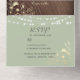 Elegante, schicke, moderne, schicke Weise grün und rustikale Holzhochzeit ganz-in-one-Einladung mit Imitaten goldenen Blumenspitze, Saitenleuchten und individuelles Bild des Ehepaares auf der Rückseite. Fügen Sie Ihr Foto, Ihre Hochzeitsdetails und uAwg.