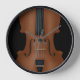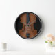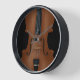 Die Uhr hat ein Detail aus einem Cello (oder Violine oder Viola), das die Saiten, die Brücke, die Löcher und die Feintuner zeigt.