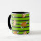 Diese Tasse ist mit Aquarellsärgen und Jack-o-Laternen mit Gespenstern, die auf einem lustigen, grün und dunkelgrau gestreiften Hintergrund aus dem Set kommen, ausgestattet. Ideal für leckeren Kaffee oder heißen Tee der Saison!