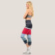 Schöne und moderne geometrische Streifen Capri Leggings für Frauentag in Blau, Rot, Grau und Weiß.