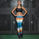 Ein wunderschönes und modernes Paar Capri Leggings für Frauen, die in einem geometrischen Muster gestreift und in einem modernen Lebensstil gestaltet sind.