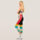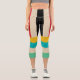 Schöne farbige Capri Leggings für Frauen in Schwarz, Rot, Gelb und Grün mit geometrischen Wiederholungen.