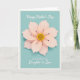 This card features a calm, muted aqua-blue background with a large stylized flower centered like a gentle gift ❤️. The bloom is made of many soft pink petals layered in smooth curves, with shading that shifts from deeper blush near the base to pale, airy tips. Fine outlines and faint shadows give the petals a lifted look, as if they’re leaning closer in a tender, affectionate gesture. In the middle, a textured cluster of tiny yellow-orange dots forms the flower’s core, with a few slender dark filaments reaching outward for contrast. Near the top, a short line of white text sits lightly above the illustration, like a quiet whisper of celebration. Below the flower, a second line of white text is placed neatly, offering a warm note of appreciation without crowding the design 🌼. A slim white border frames the entire scene, with the soft pink petals standing out against the cool aqua field.