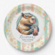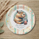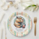Striped Funny Capybara Custom Name Baby Shower Pappteller