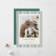 This clean and modern Christmas template features classic green vertical stripes framing a large photo space for a fresh, festive look. A handwritten “merry christmas” greeting sits beneath the image, paired with elegant serif text for names and the year to create a timeless, personalized touch. The coordinating back design includes an additional photo area and customizable message space, giving you room to share more holiday joy. Simple, stylish, and easy to personalize, this layout is perfect for anyone wanting a warm and modern Christmas card with extra room for memories.