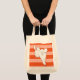 Spaß! Spaß! Spaß! Dieses Poodle geht direkt auf dich zu. Er ist voller Leben und ziemlich großartig auf einem gestreiften orangefarbenen Hintergrund.