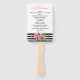 Stilvoller Hochzeitsfan in Weiß, schwarz-weiße Streifen, über den Boden und hübsche rosa Fußbäder, die die untere Front des Ventilators schmücken. Personalisieren Sie den Text für Ihren Hochzeitstag. Matching Produkte sind erhältlich.
