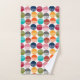 This towel set has a mid-century modern design of striped semicircles and solid semicircles put together on a field of white.