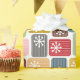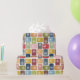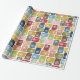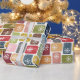 Dieses Verpackungspapier hat ein modernes Design von Rechtecken aus Streifen mit weißer Sternexplosion auf ihnen.