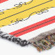 Dekoratives Retro-Design mit spanischem Geschmack, mit einem Streifen in Gold, Rot, Weiß und Schwarz Swirl-Verzierung. Ein individualisierbares Design in Schwarz, Weiß, Rot und Gelb für Sie, um mit Ihrem eigenen Text, Bildern und Ideen zu personalisieren.
