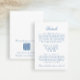 Diese elegante blaue Hochzeitsunterkunft und die Shuttle-Umschließungskarte beinhalten Platz eins Hotel und Informationen über einen Shuttleservice. Auf der Rückseite gibt es einen QR Code für Ihre Gäste, um einfach Ihre Hochzeitswebsite zu besuchen. Sie können Ihren Text leicht anpassen, Farben ändern oder zusätzliche Formulierungen löschen, die Sie nicht benötigen, indem Sie unter "Anpassen" auf den Button "Bearbeiten mit dem Design-Tool" klicken. Diese sind so konzipiert, dass sie zu meiner Striped Bass Kollektion von Concertina Press passen.