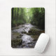 Vertikales Mousepad. Hinunter den Strom umgeben durch einen Sommer-grünen Wald des üppigen Holzes. North Carolina. Fotografie durch Minerva Blüte.