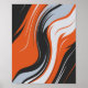 Das Design zeichnet sich durch eine auffallende abstrakte Komposition fließender, wellenartiger Kurven in fett orange, schwarz, hell weiß und weich grau aus. Die Linien Drehung und gleiten diagonal über die Leinwand, schaffen ein dynamisches Gefühl von Bewegung und Rhythmus. Der Kontrast zwischen hellen und dunklen Tönen betont die feurige Orange und verleiht dem Kunstwerk ein energetisches und fließendes Aussehen. Der Gesamteffekt erinnert an Flammen, Flüssigkeitsbewegungen oder einen in Bewegung eingefangenen starken Strom an Energie.