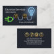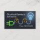 Ein ganz dunkelblaues Cover zeichnet sich durch ein kreatives Design von Schaltkreisen aus. Ganz oben steht der Firmenname "Electrical Services" neben Ihrem angesehenen Namen mit den Kontaktdaten in der Nähe der Basis. Oben drüben befindet sich ein Logo mit goldenen elektrischen Symbolen, das einige der Dienstleistungen, die Sie anbieten, darstellen kann. Danach folgen Ihr Name, Ihre Kontaktdaten und ein Slogan, um Ihre Dienste bekannt zu machen. Eine atemberaubende Karte für Elektriker.