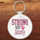 Dieser runde Schlüsselanhänger hat ein Textdesign: 'STRONG BEATS Skinny Daily' mit rosa Boxhandschuhen, die "I kick" auf ihrem Handgelenk sagen. Strong ist hell rosa und Skinny ist groß und dünn mit blassrosa Farbe. Perfektes Geschenk für Damen und Mädchen, die hart arbeiten, um gesund und fit bleibe, nicht nur dünn. Entworfen von Gloves On. Bild154