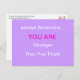 Provokative & sassy Brustkrebs Bewusstsein Cartoon & Whimsical Illustrationen von April McCallum. Die "Stärkere" Postkarte liest: "Immer denken ... Du bist stärker, als du denkst!" Kleinerer Text auf der Rückseite: "...fähig, weiser, mutiger und natürlich schöner!" (Lavendelpostkarte mit weißer und heiß rosa Schrift.)