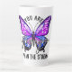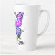 Diese lebendige, latte Tasse besticht durch einen atemberaubenden Schmetterling mit Flügeln in lila, rosa und blauen Tönen. Die komplizierten Muster und funkelnden Akzente auf den Flügeln verleihen der Touch Eleganz und Laune. Das Wort "Stärker" wird mutig über den Schmetterling geschrieben und symbolisiert die Widerstandskraft und Ermächtigung. Diese Tasse ist ideal für alle, die Schönheit und Kraft in ihrem Alltag schätzen.