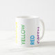Diese Tasse ist das perfekte künstlerische Geschenk für jeden möglichen Neurologie-Nerd! Der Entwurf dieser Tasse stellt die Stroop Testtheorie dar, die eine Demonstration der Störung in der Reaktionszeit einer Aufgabe ist. Wenn der Name einer Farbe in einer Farbe gedruckt wird, die nicht der Name diese Farbe ist, dauert er länger und ist härter, den Namen der Farbe zu sagen.