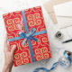 Goldstrudelmuster auf asiatischem Art-Packpapier des roten Hintergrundes
