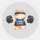 The cat is struggling and giving its absolute all to lift the heavy weight; sweat is pouring down, but the struggle finally pays off