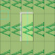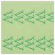 Ursprünglich in dunkelgrün auf hellgrünem Hintergrund. Der ausgewählte Buchstabe wird multipliziert, um Zeilen mit Spitzen und Buchstaben zu erstellen, die beinahe berühren.
