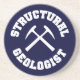 Strukturgeologe - dunkelblauer Sandstein-Untersetzer mit kollegialem Schriftsatz und gekreuzter Felshammergrafik.