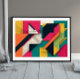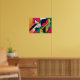 Dieses auffällige abstrakte Druckwerk kombiniert strukturierte Geometrie mit spielerischem Farbenblocken, die fette Farbtöne von Magenta, aquamarin, orange, gelb und grün kombinieren. Texturierte Muster und saubere Linien schaffen Bewegung in Ordnung und bieten ein ausgeglichenes, aber lebendiges ästhetisches Ideal für moderne Innenräume, kreative Räume oder Bürowände, die nach Inspiration streben.