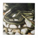 Diese Keramikfliese kennzeichnet eine Fotografie einer Strumpfbandschlange, die auf einigen Felsen sich sonnt. Ich entdeckte diesen die schöne frühen Morgen der Schlange durch meinen Garten. Ich ergriff meine Kamera und got einige nette Schüsse von ihr. Ich war angenehm überrascht, dass sie sich viele Morgen während dieses Sommers zeigte, um die Felsen zu genießen, die durch die Morgensonne gewärmt worden waren.