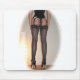 Hoher Heels, schwarze Strümpfe mit einer Naht, ein 20-Zoll-Korsett mit Hosenträgern auf einem Mouspad.