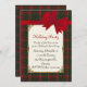 Elegante Weihnachtszeit-Party Einladung in der traditionellen grünen und roten Stuart-Klan karierten Muster, mit einem antiken Look Gold verzierten gerahmten Elfenbeintext-Bereich. Die Grafik eines roten Satin-Look Bogen und Band schmücken die Oberseite der Einladung. Stellen Sie den roten und schwarzen Text so ein, dass er Ihren Bedürfnissen des Party entspricht.