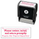 Dieses zeitgenössische Design aus Gummi-Briefmarke beinhaltet die Meldung "Bitte überprüfen, starten und sofort zurückgeben", zusammen mit einer Zeile für eine Signatur oder Initialen, die oben geschrieben werden sollen. Es enthält auch einen personalisierten Lehrernamen. Es kann von einem Erzieher, Tutor oder Lehrer verwendet werden, um Eltern oder Vormund eines Schülers fragen, die Note zu überprüfen und anzuerkennen, die ein Schüler bei einem Test, einem Aufsatz, einem Projekt, einem Test oder einer anderen Schulaufgabe erhalten hat.