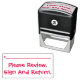 In diesem Briefmarke-Design wird die Meldung "Bitte überprüfen, unterschreiben und zurückschicken.." sowie eine Zeile angezeigt, in der eine Signatur oder Initialen oben geschrieben werden können. Es könnte vielleicht von einem Lehrer oder einem administrativen berufliche genutzt werden, um zu verlangen, dass jemand den Inhalt eines Dokuments überprüft und anerkennt.