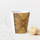 Das abstrakte Originalmuster von ZoeSPEAK auf dieser kleinen Latte-Tasse entstand aus Zoes Originalfoto einer Muschel. Das enge Foto der weißen Muschel wurde zu Parkettböden, goldbraun getönt, kombiniert. Die Fliesen haben eine zusätzliche Touch, die mit gebogenen metallischen Diamantformen versehen ist, die die Nähte markieren.