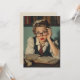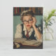 Eine junge Frau in Vintager Kleidung, die eine Brille trägt, sieht überwältigt aus, während sie an einem Schreibtisch mit offenen Büchern studiert. Die Umgebung ähnelt einer akademischen Szene aus den 50er Jahren.