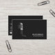 Eine moderne, dunkle Studio Mikrofon Visitenkarte für Musiker, Sänger, Sänger und Musikproduzenten. Würde auch gut für Leute, die einen Podcast laufen. Das minimalistische Kartendesign zeigt ein Studiomikrofon auf dunklem Hintergrund mit Namen und Beruf auf der Vorderseite. Auf der Rückseite des Visitenkartendesigns wird ein schlichter schwarzer Hintergrund mit Ihren Kontaktinformationen angezeigt, einschließlich eines Social Media Handles. Dieses Design wird auch für einen Tontechniker, Toningenieur oder einen Voice-Schauspieler gut funktionieren.