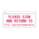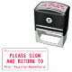 Dieses Computerdesign beinhaltet die Briefmarke "BITTE UNTERZEICHNEN UND ZURÜCKKEHREN" sowie eine Zeile für eine Unterschrift oder Initialen, die oben geschrieben werden sollen. Es enthält auch einen anpassbaren Tutor- oder Pädagogiknamen. Es könnte von einem Lehrer, Lehrer oder Lehrer genutzt werden, um die Eltern oder Vormund eines Schülers fragen, um die Arbeit des Schülers an einer Prüfung, einem Aufsatz, einer Arbeit oder einem anderen Schulauftrag zu überprüfen.