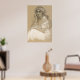 Dieses wunderschöne Poster zeigt eine Skizze, die auf Alphonse Muchas Bleistiftskizze aus dem Jahr 1897 basiert und ursprünglich als Kalenderdesign entworfen wurde. Der Kalender wurde jedoch entfernt, und die Skizze wurde zu einem beliebten dekorativen Panel, das unter dem Titel "Evocation" im Jahr 1898 verkauft wurde. Die Skizze stellt eine Frau in einem leichten Kleid dar, das in zarten skizziert wurde und Muchas einzigartigen Stil zeigt. Der zeichnend vereint Muchas verträumte Vision eines spirituellen Wesens, ein Motiv, das er seit den frühen 1890er Jahren verfolgt. Interessanterweise war Mucha während dieser Zeit dem Pariser Spiritualenkreis nah und beteiligte sich oft an psychischen Experimenten in seinem Studio mit einem Medium. Der starre Blick und die starre Haltung der Frau zeigen den Einfluss solcher Experimente.