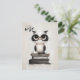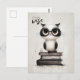 Eine Postkarte mit anpassbarem "studienweisen" Text mit der Darstellung einer auf einem Buchstapel stehenden Furry-Eule.