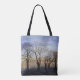 Ein Gemälde von Winterbäumen, die an einem stimmungsvollen Himmel geschmückt sind. Trage den ganzen Tag ein Stück Originalkunst mit dir!