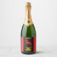 Welcome the Chinese New Year on February 17, 2026, with these sparkling wine labels, which feature the stunning design of a fiery red horse with flame-like mane, tail, and flame motifs, on a faux black satin fabric. Text can be personalized.