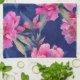 Designed for both beauty and everyday use, this kitchen towel offers luxury and style while in the kitchen. The bold contrast of pink florals against the deep blue background creates a timeless look that feels both fresh and sophisticated—perfect for floral lovers and anyone who enjoys functional style.