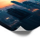 Ein Sturm wütet über eine futuristische Stadt mit blitzenden Wolkenkratzern. Eine dramatische und filmische urbane Szene.