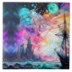 Raumstation, stürmische Meere unter einem Vollmond und ein bunter abstrakter Himmel KUNST GESCHAFFEN VON MINX267