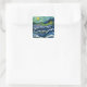Wilde Ozeanwellen mit grünem Himmel und Bergen.