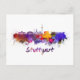 Stuttgarter Skyline in Aquarellfarbe Postkarte