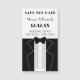 Save the Date Magnetkarte mit einem Gatsby-Flair aus den 20er Jahren mit einem schwarzen Tuxedo und einem Vintagen Retro-Schriftart. Ihre Daten hinzufügen