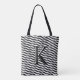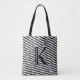 Fügen Sie Ihren Accessoires-Beuteln und -Geldbörsen personalisierten Stil mit einem maßgeschneiderten Totbeutel hinzu. Stilvolle Schwarz-weiße Zickzack Zig Zag Streifen Monogram Tote Bag. Tolle Geschenkidee.