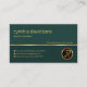 Auf der Rückseite, in einem dunkelgrünen Cover, befindet sich das Gold-Sicherheits-Logo oben, gefolgt von Ihrem prestigeträchtigen Namen, Kontaktdaten und einem Slogan-Beschriftung, um Ihre Dienste zu veröffentlichen. Alle Schriften sind in Imitaten Gold.