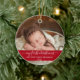 Elegantes, trendiges Script Mein First Christmas Baby Foto Red Ornament mit Snowflakes zurück